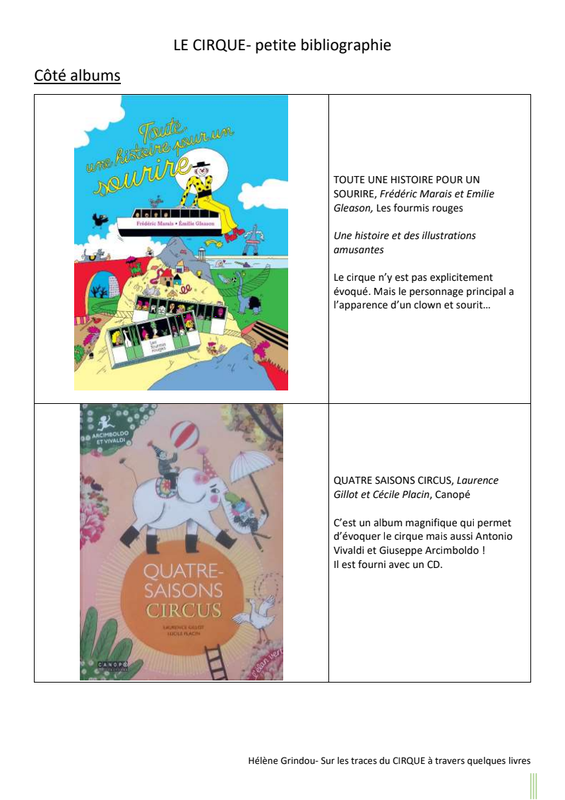 LE CIRQUE- petite bibliographie